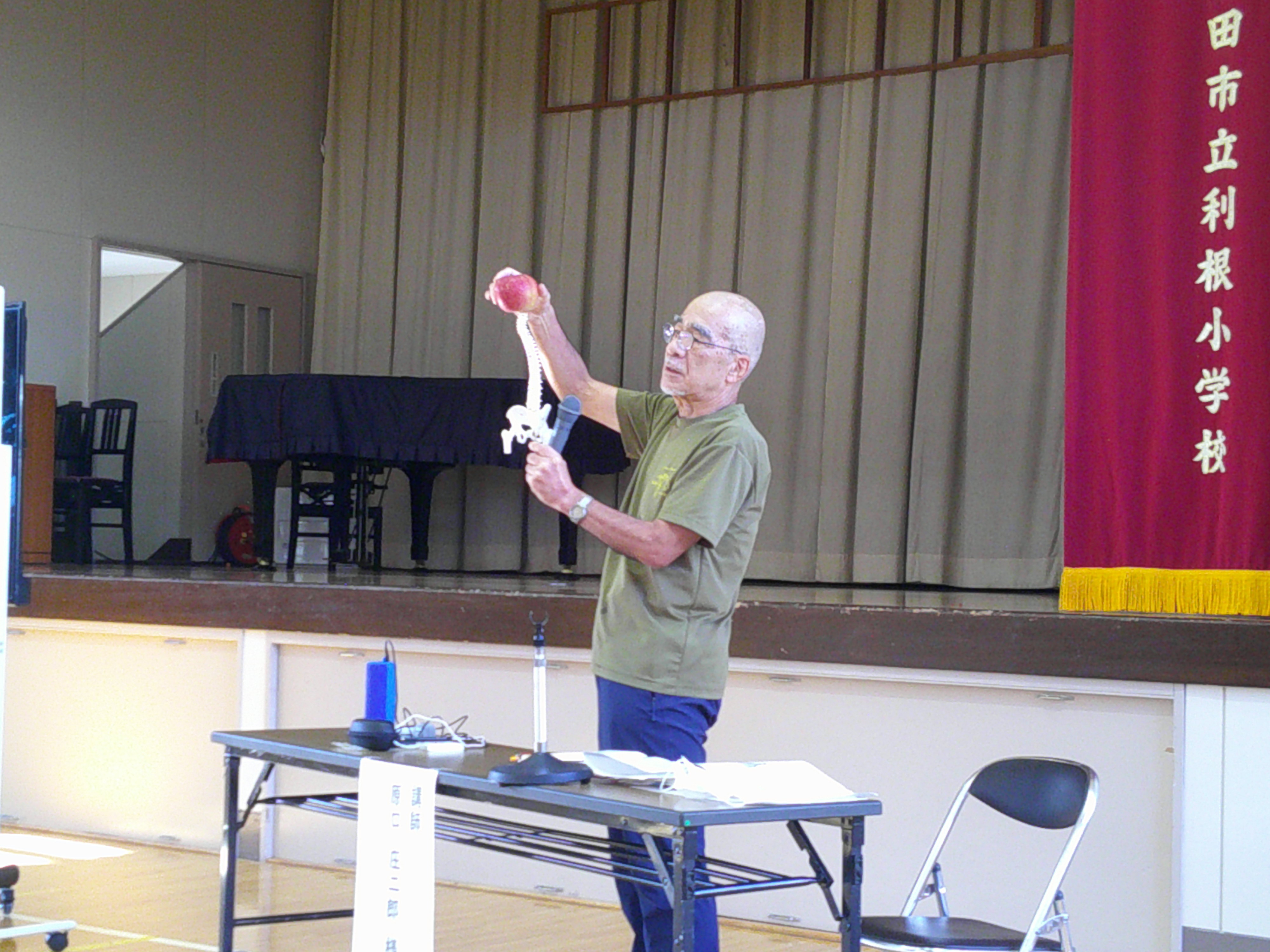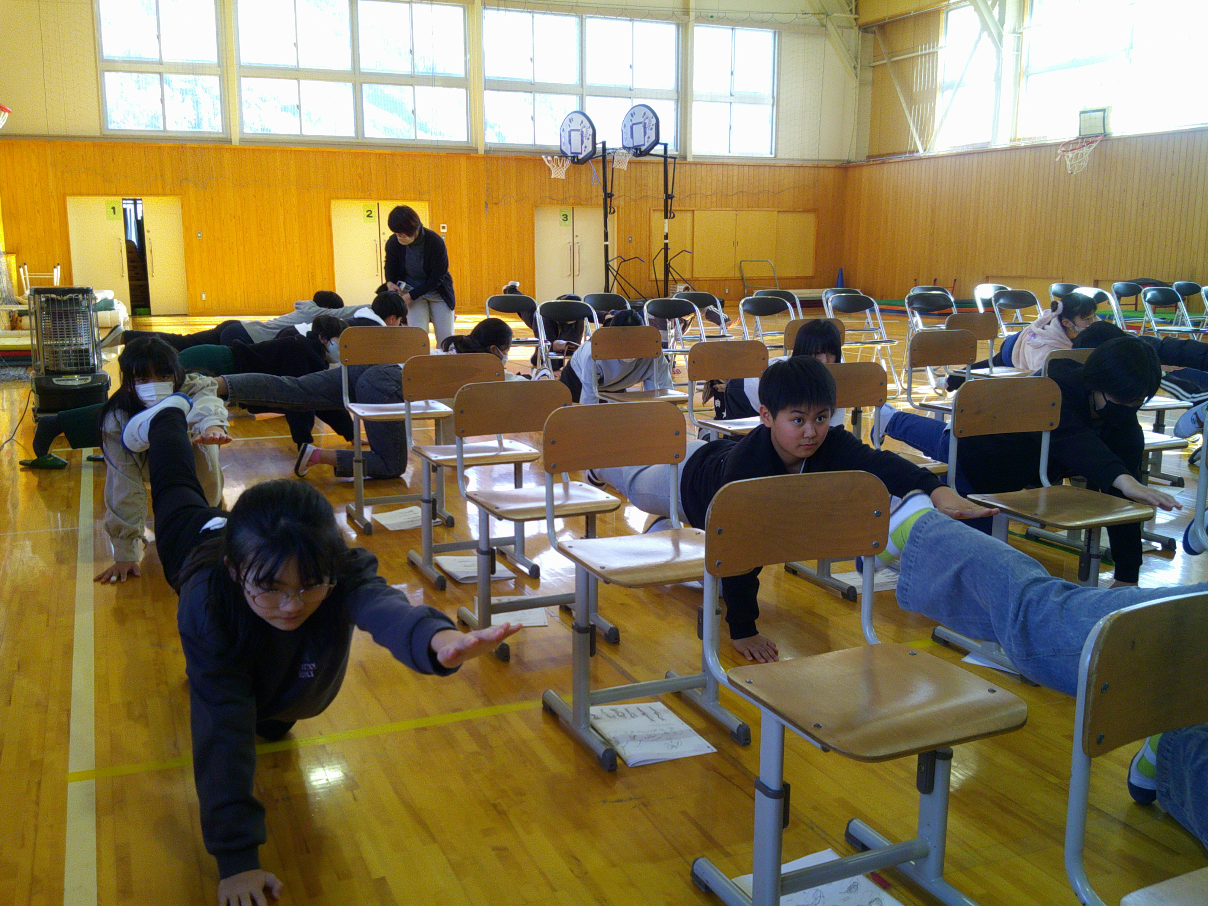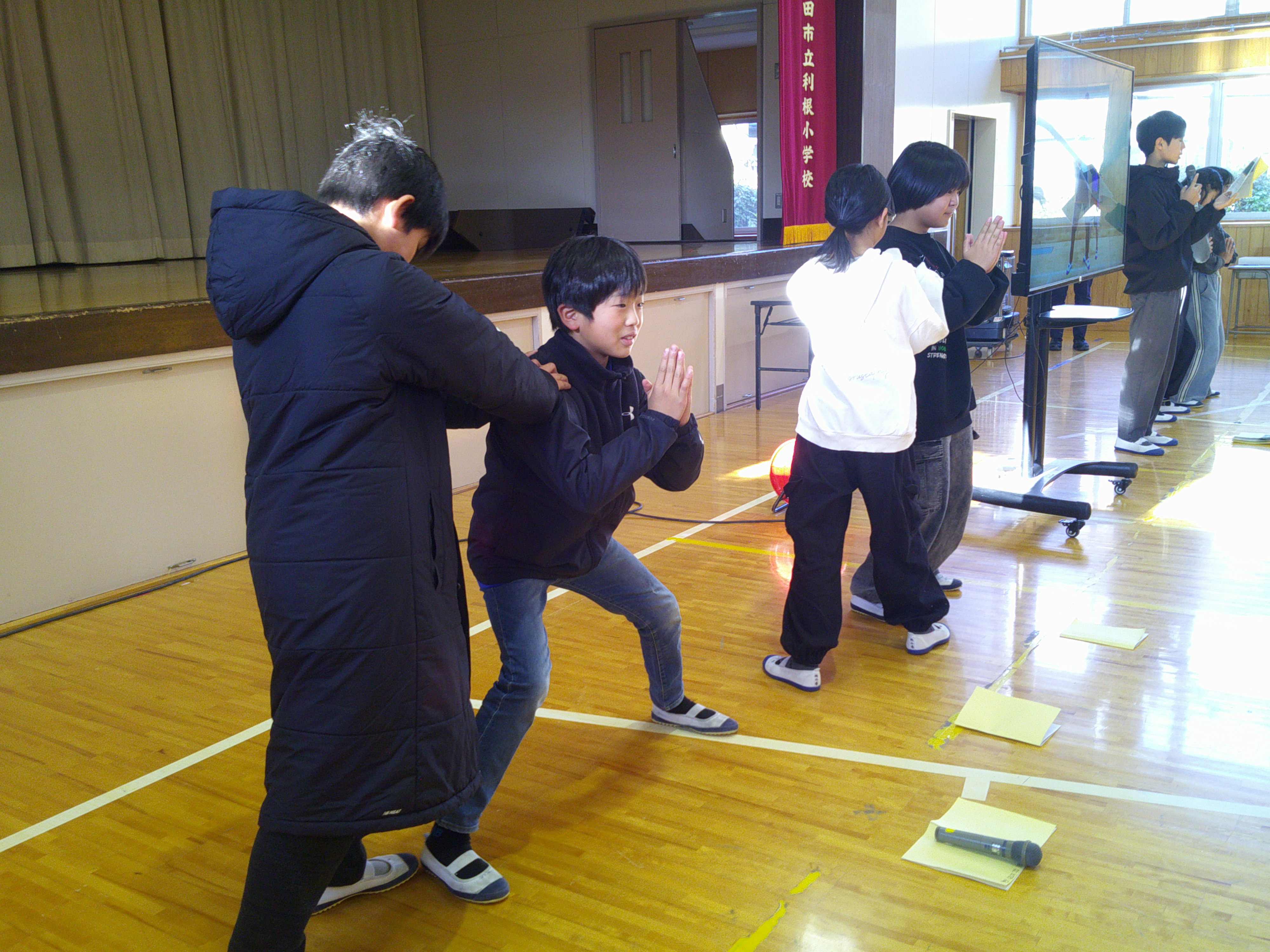 保健給食委員会は今年度「丈夫な体で かがやけ とねっ子! 〜体幹をきたえて 姿勢マスターになろう〜」というテーマに取り組んでいます。今回は、学校医で普段からお世話になっている皇海診療所の原口先生に体幹についてご講演をしていただきました。 また、保健給食委員会の児童は体幹を鍛えるストレッチやトレーニングを動画付きで紹介し、みんなで実際に体験しました。背筋の伸びたよい姿勢は、見た目が美しく格好よいです。体幹を鍛えて、いつでも姿勢が崩れないといいですね。