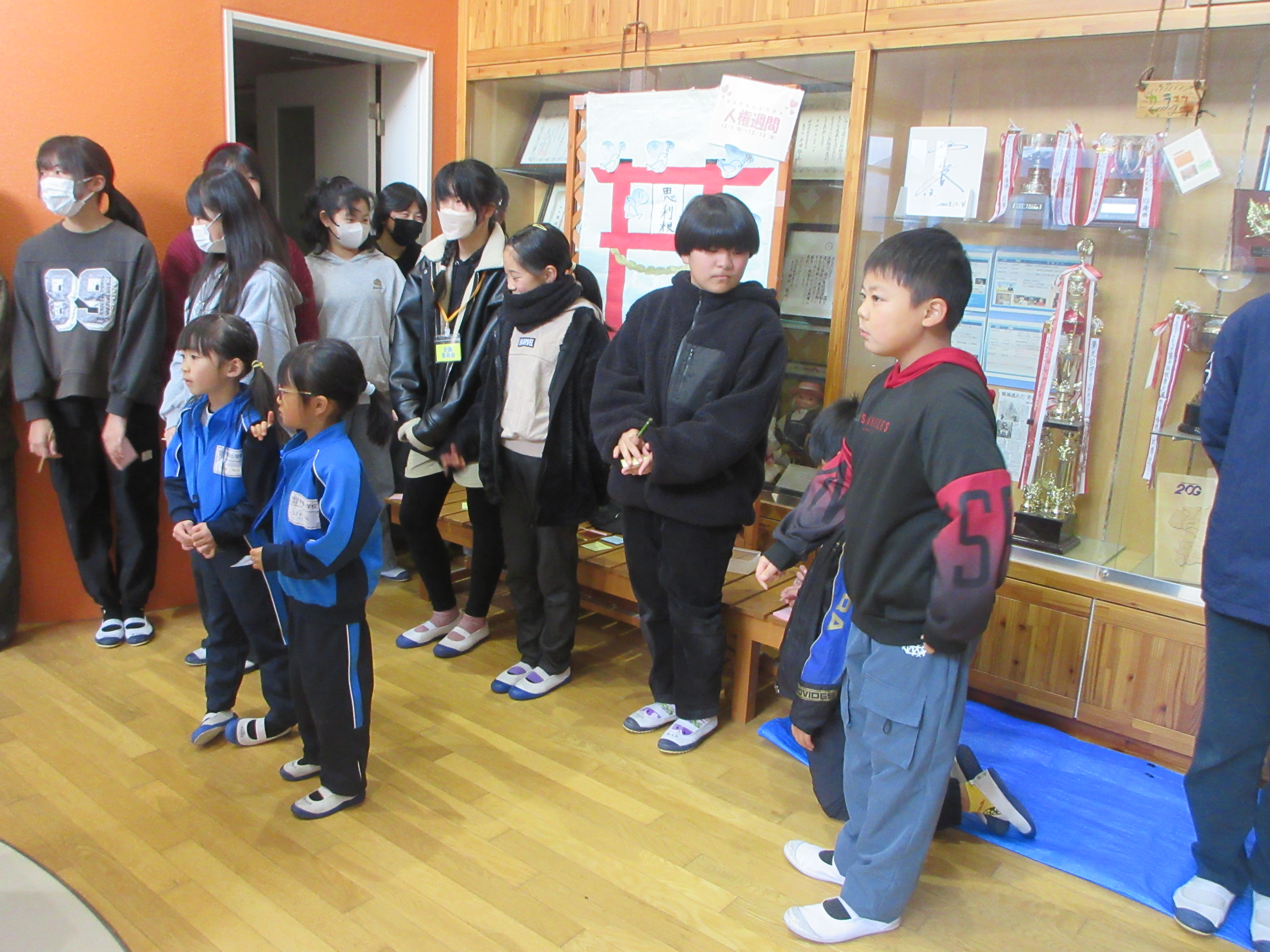 早いもので今日から12月となり今年も残り1ヶ月となりました。玄関では、朝早くから挨拶運動を行っている児童が元気のよい挨拶をしています。また、友達のよいところや感謝を付箋に書いて伝える思利根活動も始まりました。みんなが楽しく幸せに生活を送るには、一人一人が相手の気持ちを考え、互いに尊重し合える人権意識の高揚が大切です。