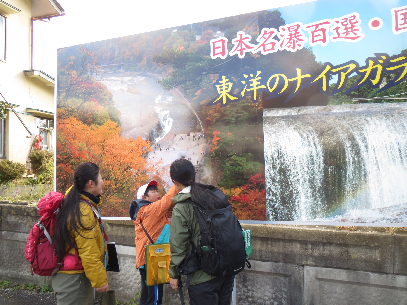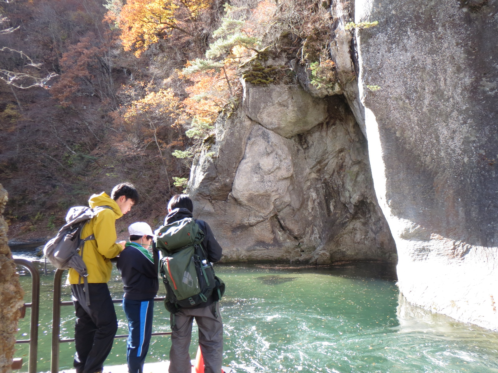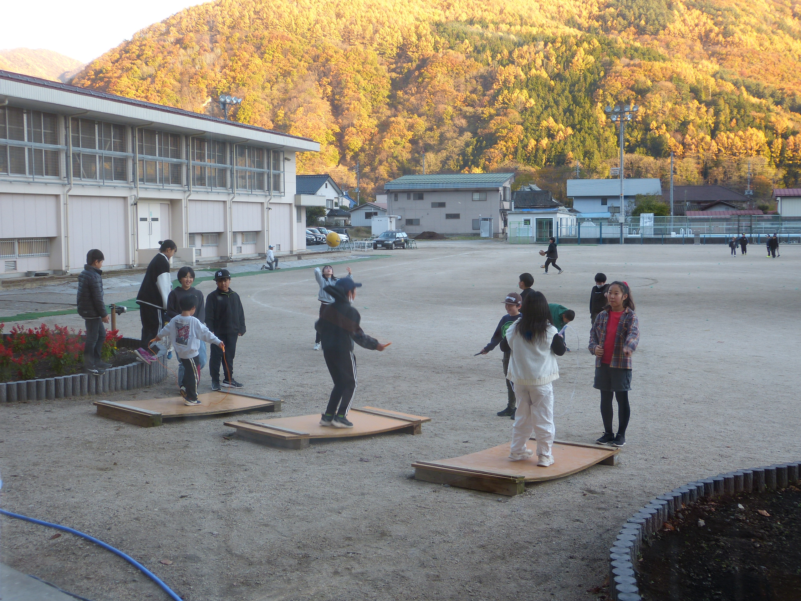 今日は天気もよく山々の紅葉が大変きれいでした。本校は、吹き割りの滝がすぐ近くにあり、学校からたった5分で上の写真の場所に行けます。あまりにも身近にあるためこの景色を当たり前に感じている自分がいます。しかし観光客が「すごいね」「迫力あるね」と言っているのを聞いて、学校のすぐ近くにこのような宝があることは改めてすごいことで誇らしいことだと感じます。赤や茶色に美しく紅葉した山々に囲まれ、今日も子ども達は元気に遊んでいます。