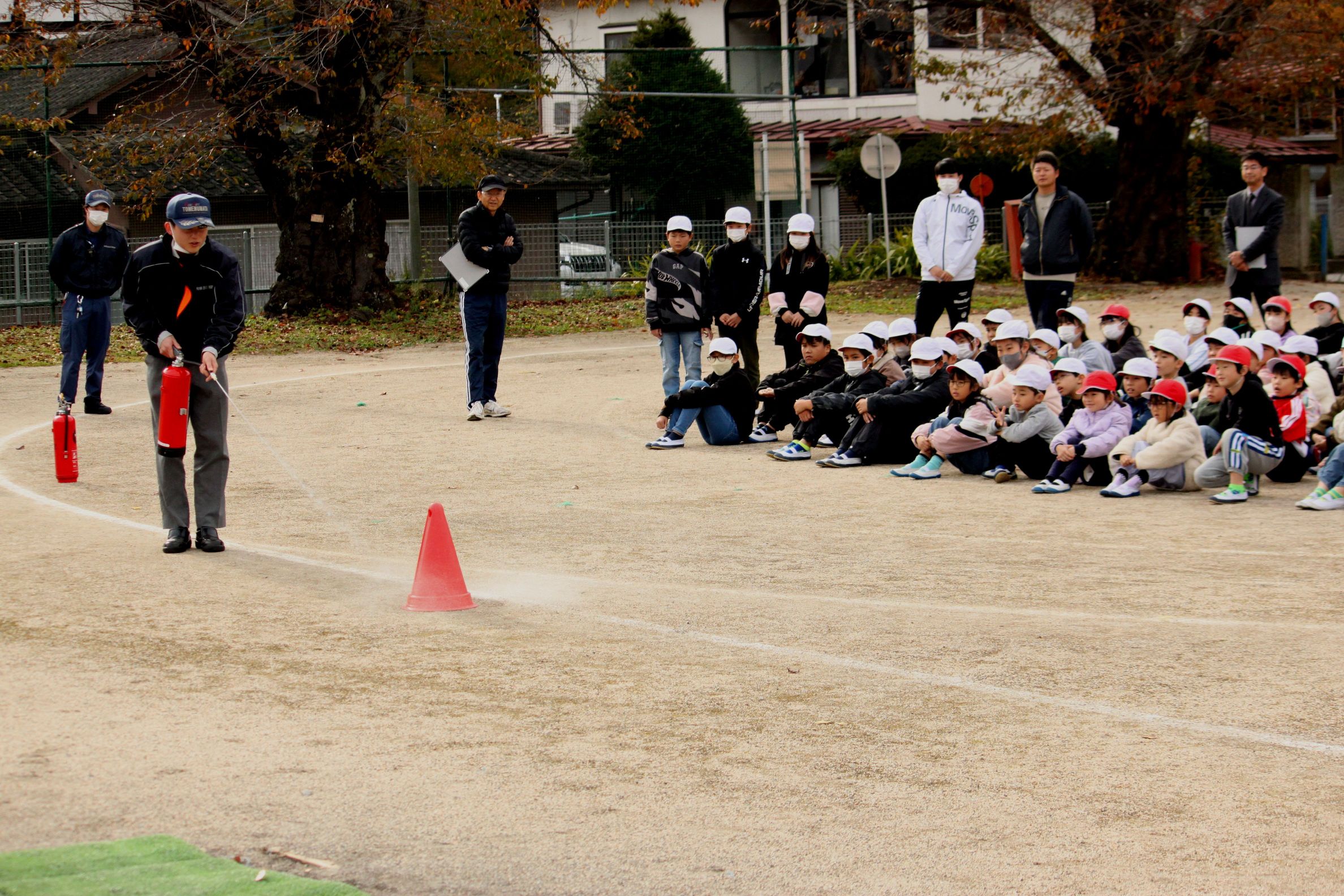 今日の5校時は理科室での火災を想定した避難訓練でした。避難開始の放送後、全員が校庭の避難場所まで1分で集まれます。友達とおしゃべりしている児童はどこにもいなく、みな真剣に急いで行動できていて立派です。これからの時期はファンヒーターやストーブ、それからモバイルバッテリーなどからの発火などに留意してほしいと思います。