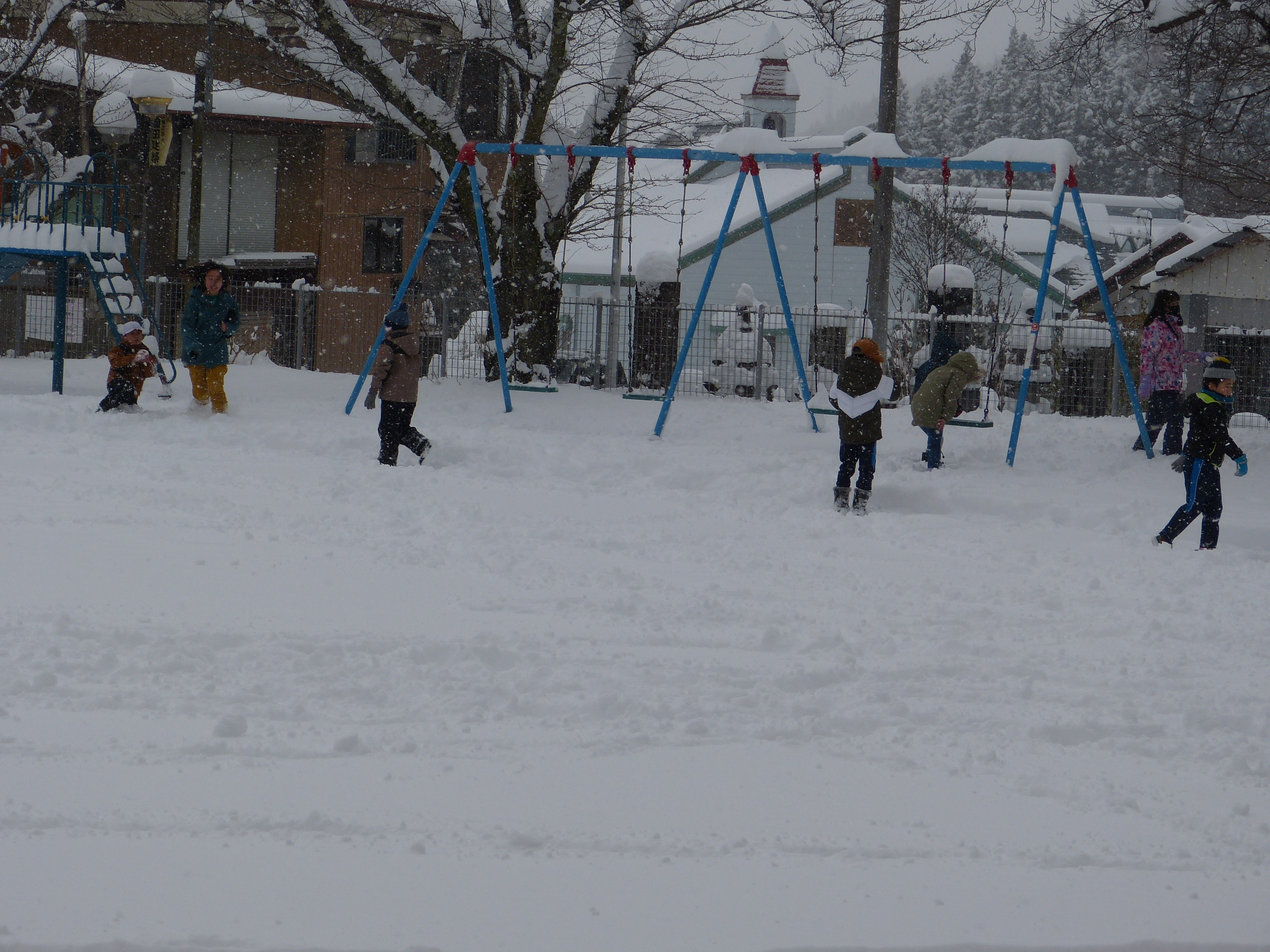沼田市は昨日の夕方大雪警報が発令されました。そして1枚目の写真が今朝の校庭の風景となります。 ブランコにある雪の高さを計ったところ24pありました。今年初の積雪としてはかなりの量です。まだノーマルタイヤの人は今朝は大変だったのではないでしょうか。さっそく20分休みには、雪投げや雪遊びで子どもたちの元気な声が聞こえてきます。風邪やインフルエンザで休んでいる児童は0人。すばらしいことです。