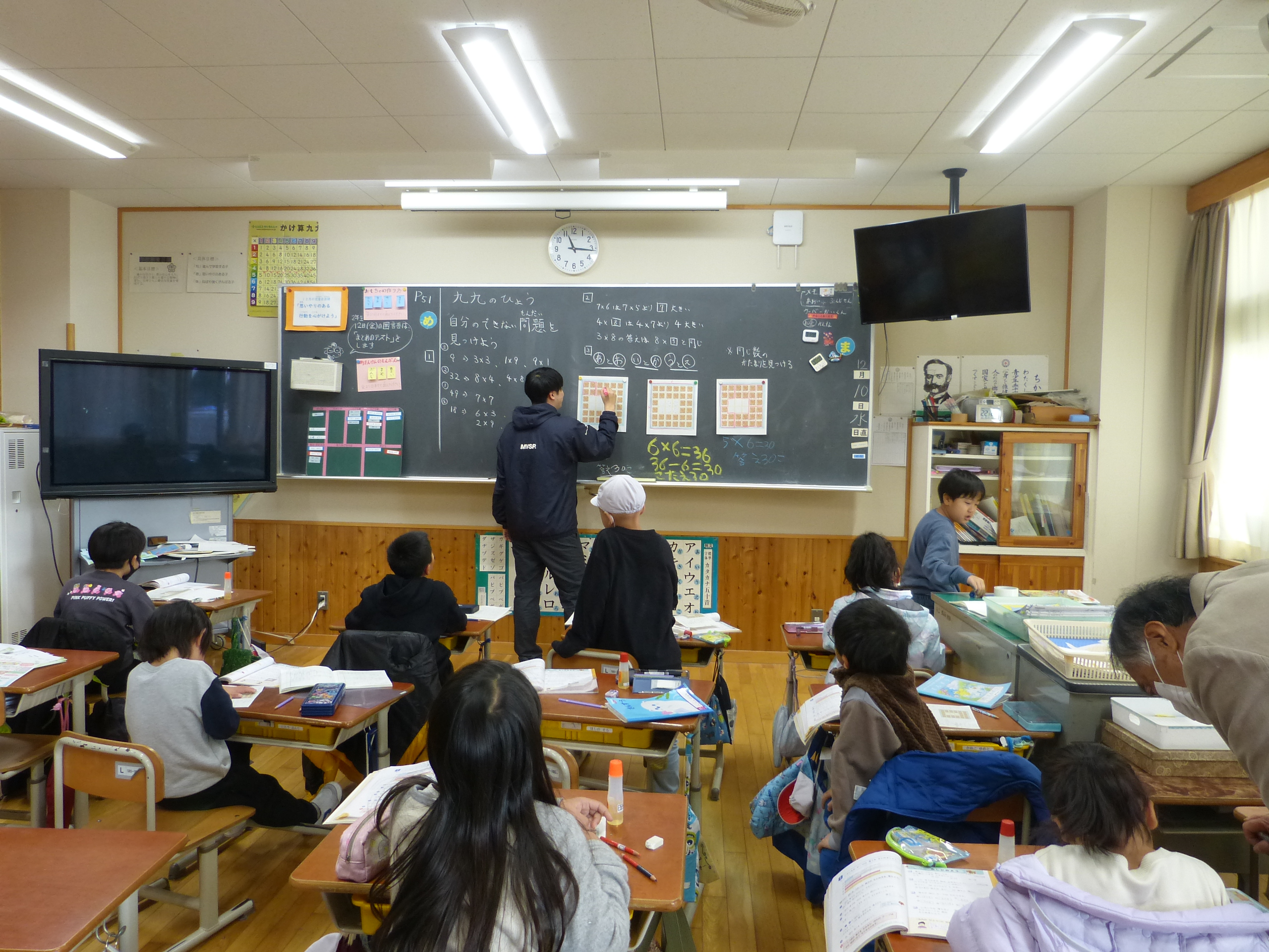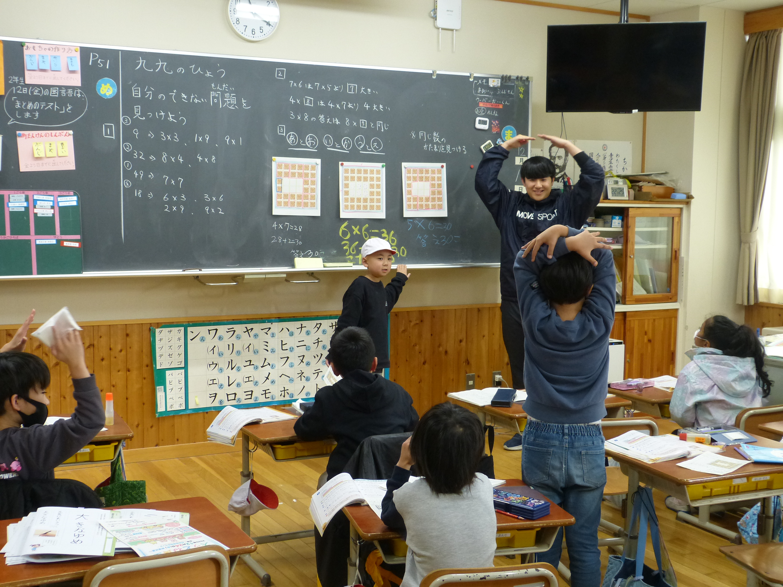 この時期はどの学校でも2年生は、かけ算九九の学習に励んでいることかと思います。暗記して九九をすらすら言える子もいれば、なかなか覚えられなくてつまずく子もいるかと思います。繰り返し声に出したり、家でも練習したりして、2年生の内に確実に習得できるよう頑張ってほしいと思います。現在2年生は奮闘中です。