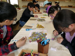 | 令和元年5月29日(木),5年生がみなかみ町の「たくみの里」に,春の旅行で行ってきました。野仏めぐりをしたり,「押し花の家」や,「ガラスの家」,「七宝焼きの家」など,児童が自分で選んだ体験場所にそれぞれ分かれて手作り体験をしたりしました。 それぞれの体験の家では,礼儀正しく挨拶をして,熱心に物づくりに取り組むことができ,たくみの里の方々からお褒めの言葉をいただきました。心を込めて作った作品は,とてもよい思い出となったことと思います。大切に,家で使って欲しいと思います。 班別行動では,意見がぶつかり合いながらも,みんなで話し合うことを通して協力する大切さを学べたことができたことでしょう。今回の班別行動で学んだことを,10月の東京旅行や来年の修学旅行の班別行動に生かして欲しいと願っています。 ☆児童の感想 鈴の家のおばあちゃんがやる前に大事な話をしてくれました。ぼくは鈴の下の方に「勇」と「友」の字を書き入れました。自分に勇気をもって,友 達に優しくする,という気持ちをもって生活したい思って選びました。 ☆児童の感想 今日は,この1日でとてもすごい体験ができて本当に良かったです。この体験で作った作品を大切し,一生とっておきたいです。 ☆児童の感想 家に帰って家族に作品を見せたら,みんな「すごい。」,「いいね。」と言ってくれました。今度は,家族と行って,ぼくが色々案内してあげたいです。 |